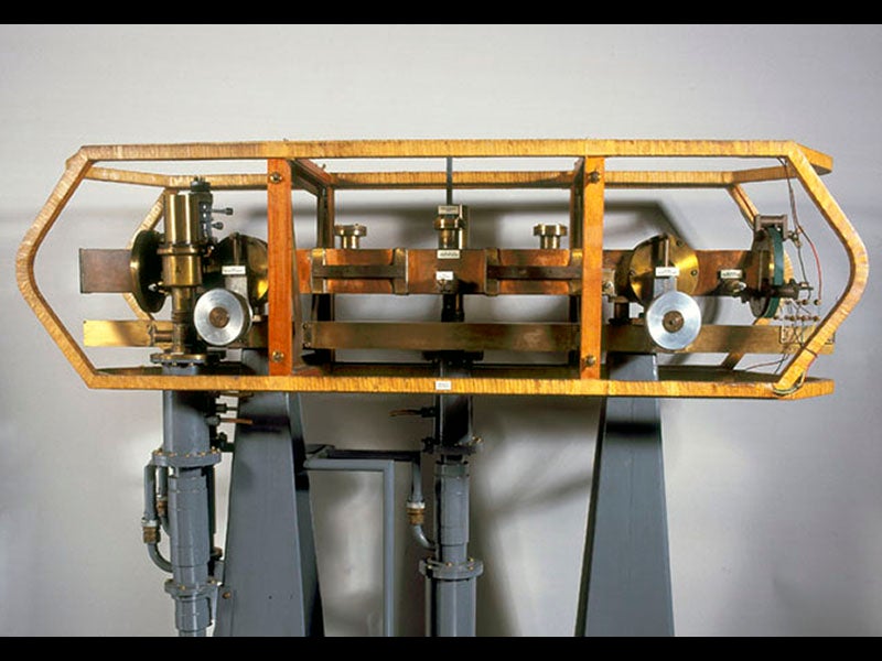 Louis Essen, an English physicist, was born Sep. 6, 1908. Essen made two major contributions to physics, in two different fields, which is not as common as you might think, at least not in the twentieth century. In 1946, he developed a method of measuring the speed of light by setting up standing microwaves in a precisely-measured cavity, and he determined the speed to be 299,792.5 km/sec, which was at odds with measurements made using other methods. However, modern experimenters have now settled on a value of 299,792.458, so Essen was nearly spot-on.