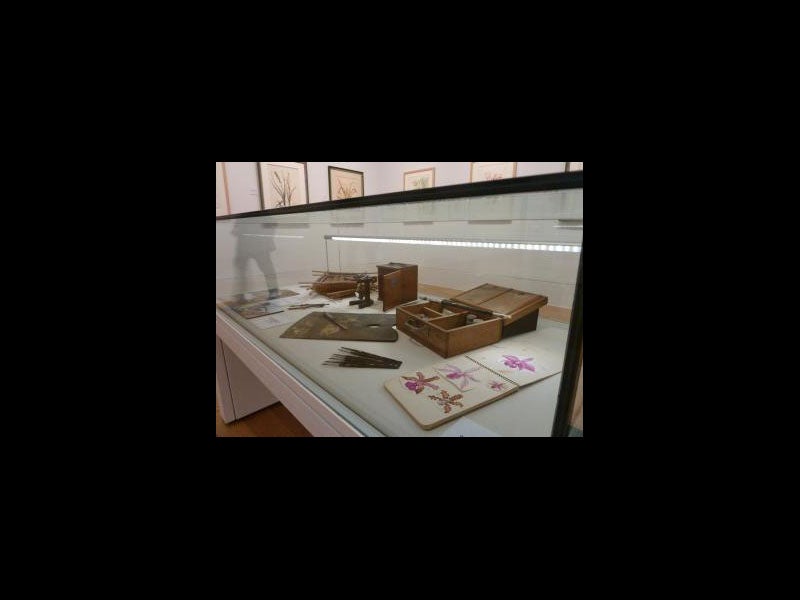 If you would like to see Mee's original paintings and are not already the lucky owner of one, you should travel to the Royal Botanical Gardens Kew in London, where they have quite a number of Mee watercolors. They mounted a Mee exhibition just last year, in which they displayed, among other drawings, her original painting of the Amazonian moonflower, the night-blooming Cereus of the rainforest, which flowers just once a year at night. A museum blog reproduces the painting, as well as a photograph of a case displaying her paint box and other exploring paraphernalia, and we reproduce these above (fourth and fifth images).
