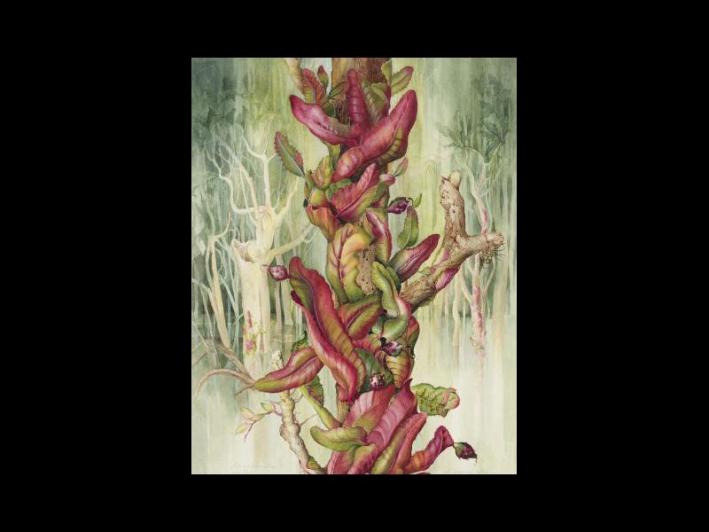 The first three images above are from Mee’s 1968 book and depict, in order, a Heterostemon, a russet Begonia, and a Neoregelia margaretae. The last turned out to be a new species of Bromeliad and was named in Margaret Mee's honor.