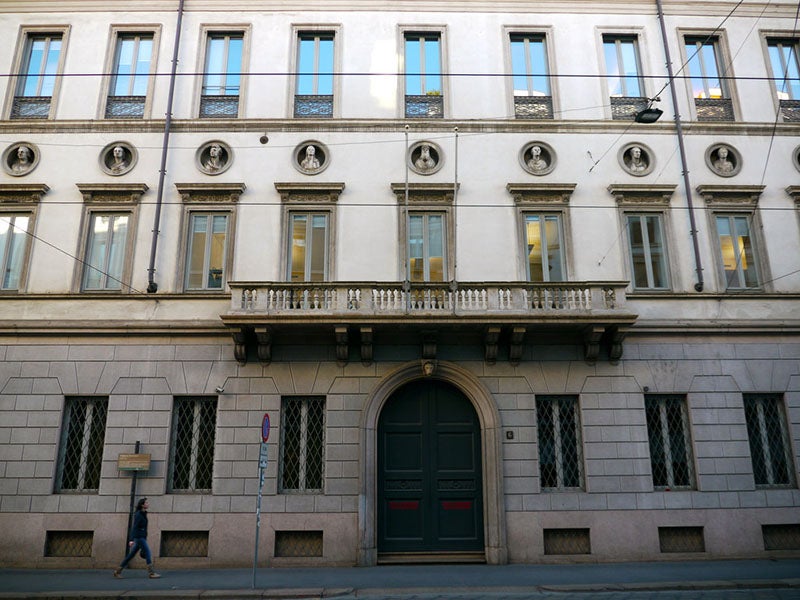 The Palazzo Brentani in Milan has a series of 18 portrait plaques that circle the exterior, celebrating important citizens of Milan. Front and foremost, right over the entrance, is Leonardo da Vinci (third image), but in the second-best spot, just to the viewer’s left of Leonardo, is a plaque for Agnesi (fourth image).