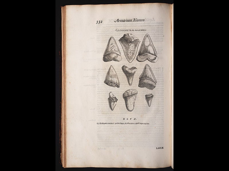 The images selected for today include a view of the Phlegraean Fields near Naples (first image); a demonstration of the smelting of sulphur (second image); an engraving of the Belvedere torso, a famous piece of ancient sculpture in the Vatican collections (third image); and the frontispiece portrait of Mercati (fourth image). The next two images, of tonguestones, and a shark’s head, may look familiar, since Nicolas Steno used them in his 1667 treatise in which he argued that tonguestones were once shark’s teeth (see the Scientist of the Day for Nov. 25, 2015. But in fact the images originated with Mercati, 90 years earlier, and Steno just borrowed the plates to suit his purposes, and then fortunately returned them.