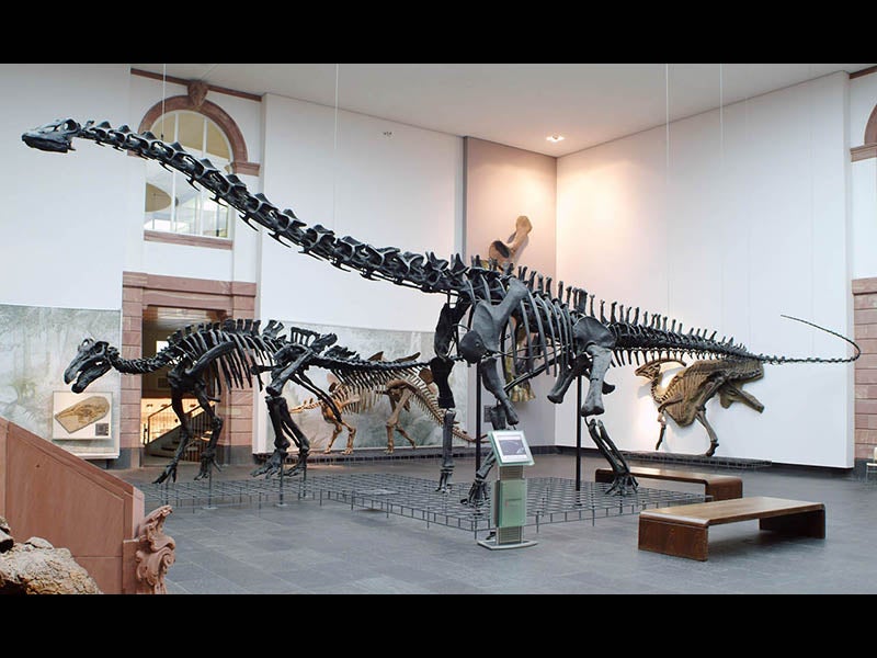 In 1907, the Museum presented a mount of a Diplodocus dinosaur Naturmuseum Senckenberg in Frankfurt, in a generous act of intercontinental exchange. Andrew Carnegie had two years earlier made a big show of presenting a plaster Diplodocus to the Natural History Museum in London; Jesup went Carnegie one better, for this Diplodocus was the real thing, and Jesup bore the cost of the entire enterprise. One image above shows the Senckenberg Diplodocus being mounted (third image); we exhibited this in our Paper Dinosaurs exhibition some years ago; the dinosaur is still on public display, although the mount has been reconfigured (fourth image).  In all, Jesup and his wife gave over 6 million dollars to the American Museum of Natural History.  For many years, a full white marble statue of Jesup stood in the foyer of the Museum. It is no longer there.  Fortunately, Jesup was not a one-institution donor, and the Westport Library in Connecticut, founded by a Jesup gift, displays a handsome marble bust of its founder (first image).