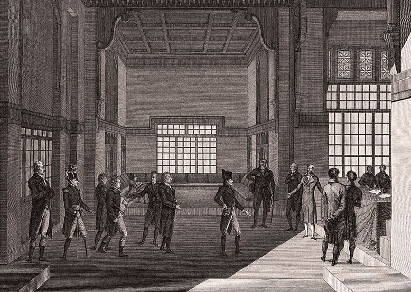 Conté lost an eye in an early explosion, and in the famous group portrait of the scientists of the Institute of Egypt (first image), Conté is easy to spot, with his rakish eye patch, standing just behind Napoleon.