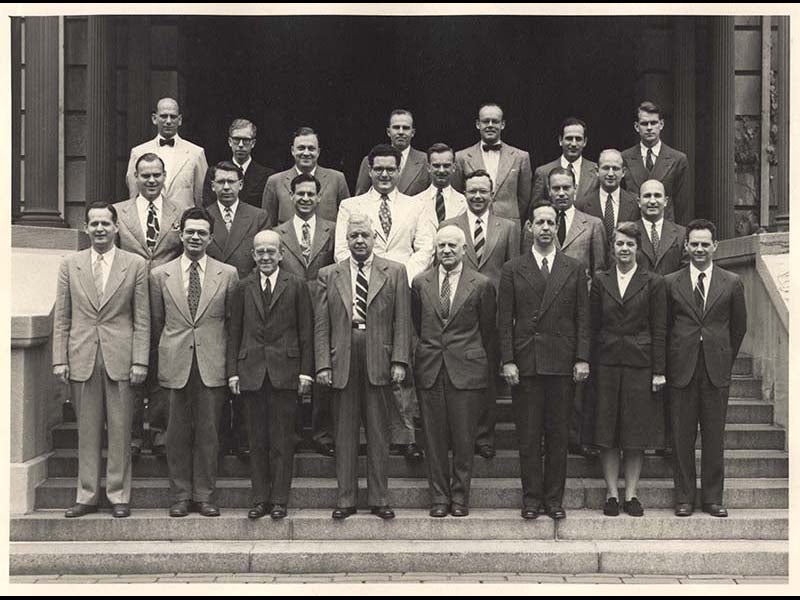 When life scientists are asked, who was the most deserving scientist never to receive a Nobel Prize, Avery is the usual choice. He was nominated 38 times for the award but was never chosen. However, he has a very attractive Memorial Gate, installed with great ceremony at what became Rockefeller University in 1965, on the tenth anniversary of his death (first image). The other images show Avery in his lab, at his desk, and in a staff picture at Rockefeller, where he is not too hard to pick out, since he only stood about 5’ 4”.