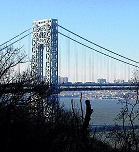 What we call the George Washington Bridge was begun in 1927, although it was known during construction as the Hudson River Bridge. 179th St. was chosen as the crossing point, because there were cliffs on both sides that already placed the bridge 200 feet above the water. Although through arch bridges were the choice at the time for long spans (the Hell Gate Bridge was a through arch bridge, as would be the Sydney Harbour Bridge), Ammann thought that a suspension bridge would provide the same stability and would be lighter, cheaper, and more aesthetically appealing, he convinced the Port Authority, and construction of the two towers began.