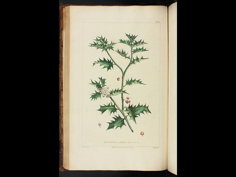 In 1731, Miller issued The Gardeners Dictionary, which would become an essential handbook for gardeners everywhere, going through 8 editions in Miller's lifetime. We have two of those editions in our Collections. Although The Gardeners Dictionary was illustrated, Miller thought that a separate set of engravings to accompany the Dictionary would be nice, and he began issuing Figures of the most beautiful, useful, and uncommon plants described in the Gardeners Dictionary in parts in 1755; the 300 engravings were then published as a two-volume set in 1760. We own this work as well, and it contains beautiful hand-colored engravings made from drawings by the best botanical artists of the era, including the incomparable George Ehret. The first three illustrations above are taken from the Figures, both volumes of which are available online in our Digital Collections.