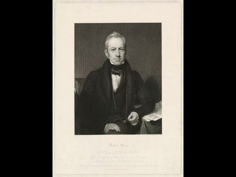 Robert Brown, an English botanist, was born Dec. 21, 1773. Brown was the naturalist on the Flinders voyage to Australia, 1801-05, and he brought back a large number of new Australian plants. He got to know Sir Joseph Banks, who had been on Captain Cook’s voyage to Australia, 1769-71, and had returned with quite an Australian herbarium of his own. Banks evidently took a liking to Brown, for Brown became the keeper of the Banks library and herbarium in 1810. When Banks died in 1820, Brown inherited the Banks collections, which went in 1827 to the British Museum, with Brown as Keeper of botanical specimens. That gave Brown one of the most prominent botanical posts in the British Isles. He was very good at his job, but he was also very slow, and many of the specimens given to the Museum by later voyagers lay undescribed.in the Museum's repository, awaiting their turn on the Brown docket. That is why, when Charles Darwin got back from the Beagle voyage in 1836, he dreaded meeting the great Mr. Brown, because he had no intention of turning his specimens over to someone who was going to just sit on them. When they first met, in 1837, Brown did indeed ask about the fate of Darwin’s plant collection, but Darwin distracted Brown with a gift of some fossilized wood (Darwin commented in a letter: “I think my silicified wood has unflintified Mr Brown’s heart”), and successfully kept his plants out of the British Museum.
