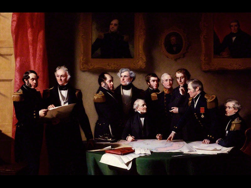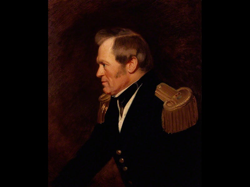 Richardson’s portrait was painted by Stephen Pearce in 1850, and then, because Richardson was involved in the search for Franklin, he was included by Pearce in a larger group portrait, usually called the The Arctic Council (1851). Once you have seen the individual portrait of Richardson by Pearce, it is not too hard to find Richardson in the group portrait, the second figure from the right, since Pearce simply copied from one portrait to the other. Both paintings are in the National Portrait Gallery, London.