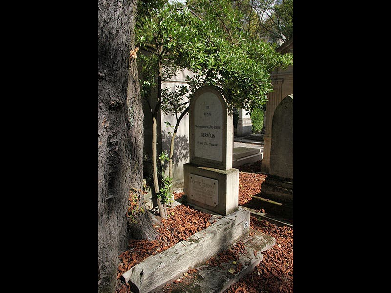 One would think that taking into account the elastic properties of metals would be a vital component of designing large structures such as the Eiffel Tower, so many people were perturbed, and continue to be perturbed, that Germain's name was not included among the 72 French scientists whose names were inscribed on the Eiffel Tower. But then, there were no women at all among the 72 on the Tower list. Even in 1889, the opportunities and rewards for women in science were very few. And even today, Germain is commemorated only by a memorial medal (first image), a street and a school in Paris, a plaque on the house where she lived (third image), and a headstone in the Pere Lachaise cemetery where she is buried (fourth image). She deserves to be more widely known.