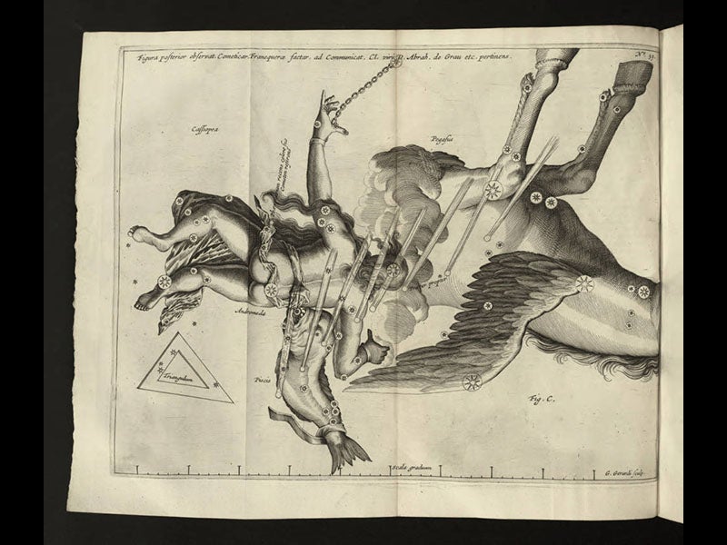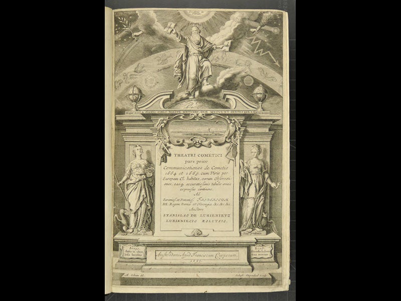 Somehow, amidst all this turmoil, Stanislaw managed to research and publish the most comprehensive survey of comets the astronomical world had ever seen. In his Theatrum cometicum (1666-68), Stanislaw discussed every comet that had been mentioned in all the annals of the world. For famous comets like the ones of 1577, 1618 and 1664-65, he amassed dozens of contemporary accounts, making this one of the most valuable resources for our knowledge of 17th-century comet observation. And the maps he provided of the more recent comets are quite wonderful, displaying a variety of engraving and constellation styles that he collected from all sorts of artists.