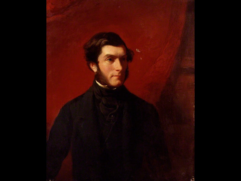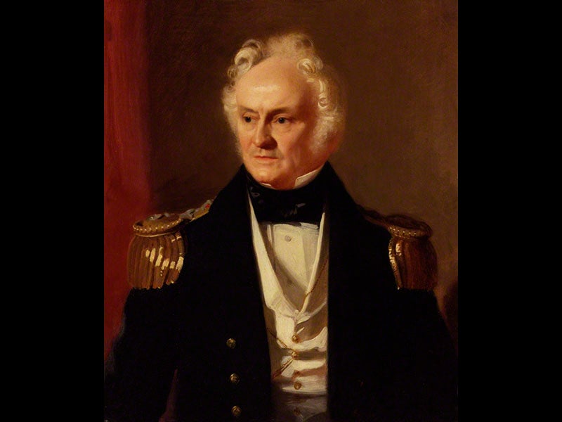 In fact, there never was an Arctic Council, and this meeting never took place. So Pearce had to show considerable initiative in composing it. He first painted individual portraits of the ten figures included (most of these survive in the NPG), and then he copied the individual portraits into the meeting room setting, with most of the poses unaltered. For example, we see above Pearce’s portraits of Edward Parry, who made four Arctic ventures in the 1820s (second image); John Clark Ross, who discovered the magnetic North Pole (third image); and John Barrow Jr., son of the man who launched the first Arctic voyage back in 1818, and now Keeper of Admiralty Records (and the person who commissioned the group portrait) (fourth image). It is not too hard to find them in their group setting. We have featured two other figures who appear in this painting as Scientists of the Day, and you will find their Pearce portraits as part of those entries: Frederick William Beechey and Edward Sabine. For a fuller account of the search for Franklin, see our 2008 exhibition, Ice: A Victorian Romance.