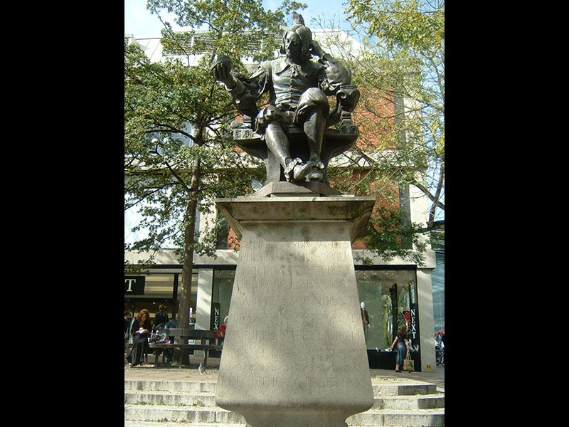 Browne was also a pioneer in archaeology, publishing a piece called Hydriotaphia, Urne-Burial (1658), which is at once an examination of some Saxon ossuary jars that had been unearthed in Norfolk, and a rumination on death and the human desire to erect monuments that have no chance against the erosion of time, "which maketh pyramids pillars of snow, and all that's past, a moment." The urns were figured in the frontispiece to his work, which is one of the first pictures we have of specific, identifiable antiquities (first image). The image here is taken from his collected Works (1686), which we also have in the collection. The engraved portrait forms the frontispiece of the Works (fourth image). There is a bronze statue of Browne in a square in Norwich, where he sits and contemplates a broken urn and either the shadow of death or the prospect of eternity (fifth image).