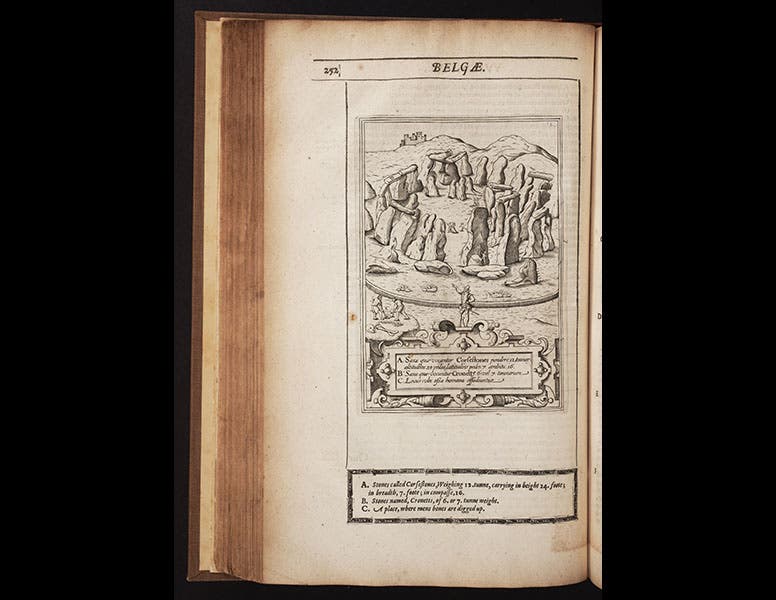 Several years ago, the Library acquired a handsome 1637 English edition of the Britannia, translated by the great Philemon Holland; it is one of 88 rare books bequeathed to the Library by Ruth Patrick, an eminent limnologist who died in 2013 at the age of 105. Dr. Patrick also donated a sizable collection of secondary studies and books of reference that will go into the main collection of the Library. The Britannia is the kind of book that we would probably not be able to acquire by purchase, since historical antiquarianism really lies outside our collection guidelines, but we are very pleased to have it, as it provides historical context for the works of Hooke, Aubrey, Robert Plot, and Edward Lhwyd that we do have in our collection.