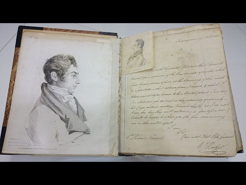 Last year, Kew Gardens mounted an exhibition celebrating the 150th anniversary of Hooker's death in 1865. One of the display cases contained a rarely-reproduced etching of the young Hooker, made after a drawing--both were exhibited, along with a letter from Hooker (fifth image). A more conventional portrait of a more mature Hooker is the lithograph made by Thomas Maguire in 1851 (sixth image).