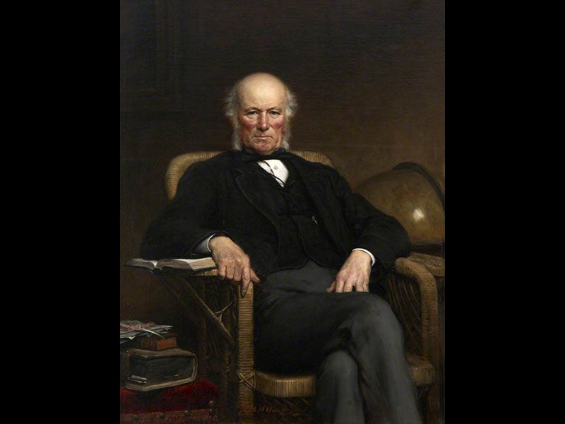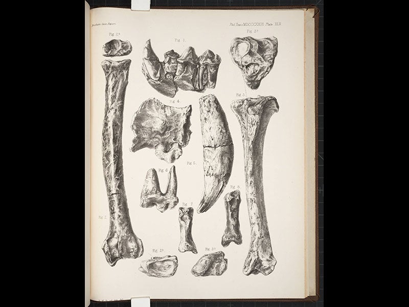 William Pengelly, a British geologist and archaeologist, was born Jan. 12, 1812. Although raised in Cornwall, Pengelly moved to Devonshire in the 1830s and began to investigate the limestone caves around Tor Bay (see map, second image). One cave, Kent's Cavern, had been excavated in the 1820s by John MacEnery, who found extinct animal bones and what appeared to be primitive stone stools all mixed together. But few people believed that such evidence demonstrated the antiquity of humans, because it was hard to prove that the tools and the animals were really there at the same time. When Pengelly learned in 1858 of an unexcavated cave, called Brixham Cave (first image), on the other side of the Bay, he did a very clever thing. He wrote to the big names in the Geological Society of London, famous geologists like Charles Lyell and Hugh Falconer, and suggested that they send down some representatives to help investigate this virgin cave. Pengelly was perfectly capable of excavating Brixham himself; what he really wanted were reliable witnesses. When the geologists arrived, and the stalagmite of the cave floor was broken through, and extinct animal bones were found below the surface (third image), along with stone tools, it was no longer possible to say that the tools were a later intrusion. The London geologists went home and reported in 1859 that there was no longer any doubt about it: humans were ancient inhabitants of the globe, and not some late arrival. It was a real turning point in archaeology and anthropology. Their initial announcement was printed immediately in the Proceedings of the Royal Society of London, but the formal paper with images of the fossils in Brixham Cave did not appear in the Philosophical Transactions until 1873. We displayed this article in our 2012 exhibition, Blade and Bone: The Discovery of Human Antiquity.