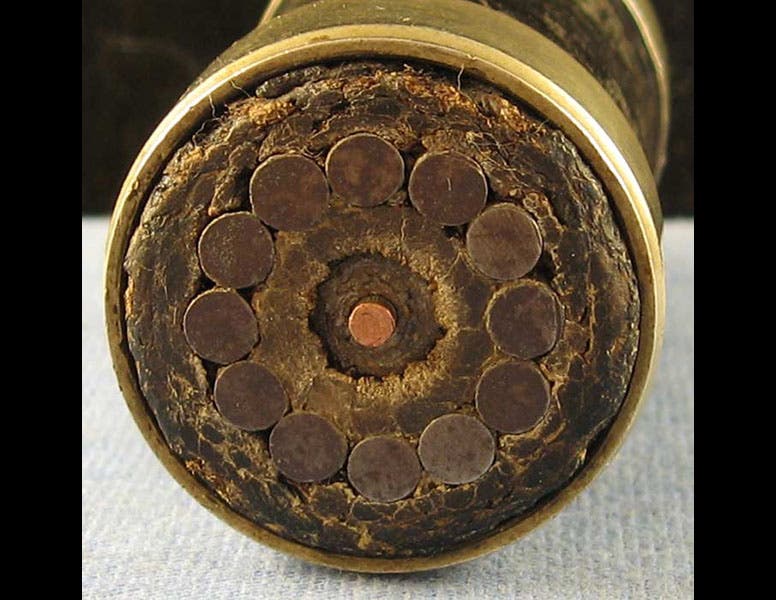 The cable was made in England by two companies: the Gutta Percha Company made the core, consisting of the copper conductor and a gutta-percha insulating covering, while Henley's Telegraph Works surrounded the core with creosote-soaked hemp, then twelve iron wires to support the weight, then more hemp and an outer liner. We see above a cross-section of the Persian Gulf cable – it is about an inch and a quarter in diameter (first image). The copper conductor, which looks solid, is actually made from four quarter-round copper wires that have been drawn and squeezed together, thus combining the best features of a stranded conductor and a solid conductor. You can’t see this in the modern photo of the cable, but you can if you look closely at the drawing (fifth image).
