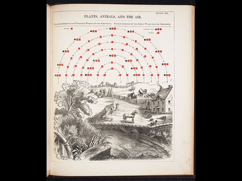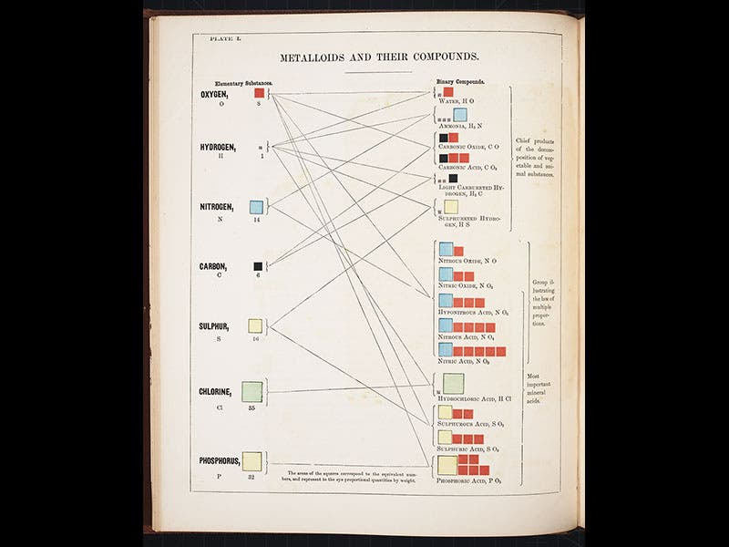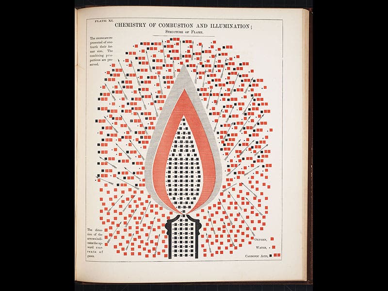 Edward Youmans, an American scientific writer, was born June 3, 1821. Youmans suffered from ophthalmia and was nearly blind for much of his life, but he was a self-taught lover of science who came to believe that the American public was being denied part of its heritage with a lack of education in the sciences. So in 1872, Youmans founded Popular Science Monthly, the first magazine intended to provide scientific information for the general public. It was astonishingly successful, contrary to the expectations of most publishing gurus of the time, with a circulation of up to 18,000 during Youmans' 15-year tenure as editor. One of the most frequent writers for the Monthly was the sociologist Herbert Spencer; indeed, it was through Youmans' magazine that Spencer became so famous in the United States. But we feature today a book that Youmans published before undertaking his editorial career; it is called Chemical Atlas; or, the Chemistry of Familiar Objects (1854; we have the 1857 edition in our Library). This book is unusual in the way it uses color to bring to life clear and simple scientific illustrations, and to convey quantitative information. There are 13 plates in the book; the ones shown above depict, in order: “The Structure of a Flame”; “The Chemistry of Geology”; “The Composition of Salts”; “Plants, Animals, and the Air”; and “Metalloids and their Compounds”. It has often been remarked that Youmans must have been inspired by the Oliver Byrne edition of Euclid’s Elements (1847), which was innovative in its use of color to convey geometrical information (last image above). We will feature this beautiful book when Byrne’s anniversary rolls around next Dec. 9. Dr. William B. Ashworth, Jr., Consultant for the History of Science, Linda Hall Library and Associate Professor, Department of History, University of Missouri-Kansas City. Comments or corrections are welcome; please direct to ashworthw@umkc.edu.