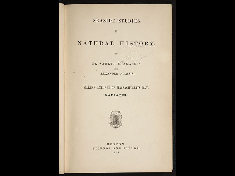 Elizabeth’s popular natural history books have been generally overlooked, but Seaside Studies in Natural History (1865; fourth image), which she wrote with her son Alexander, is quite readable and attractive, with its many delicate wood engravings of coastal marine invertebrates, such as anemones (second image) and jellyfish (third image).