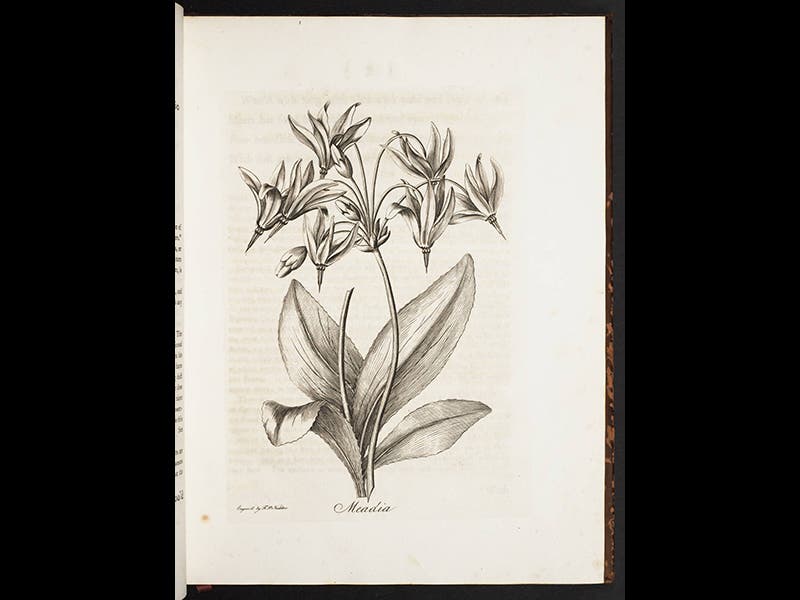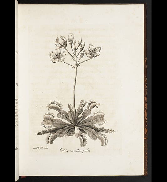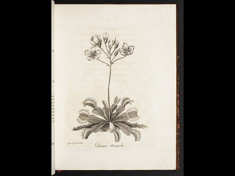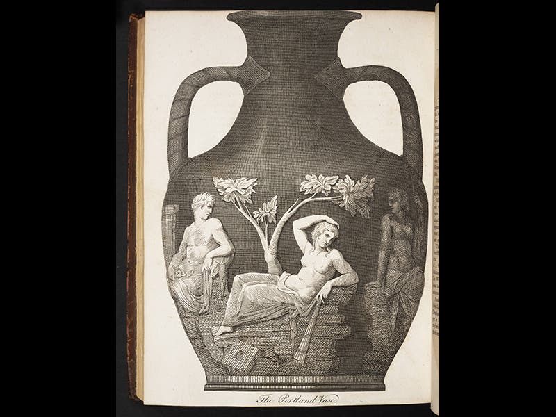After he moved to Derby, out of reach of the Lunar Society’s monthly meetings, Erasmus began botanizing and writing poetry, and in 1789 he published The Love of the Plants, part 2 (but the first part published) of what would be called The Botanic Garden (we have both parts in the Library). In these works, as well as his subsequent Zoonomia, Erasmus revealed a penchant for evolutionary ideas, which was quite unusual for the late 18th century. There are several attractive engravings of plants in The Botanic Garden; we show here a Venus flytrap and a shooting star (first and second images above). The most unexpected image in the book is an engraving of the Portland vase, which was at the time in the hands of Josiah Wedgwood, who was trying to copy it in porcelain (third image above).