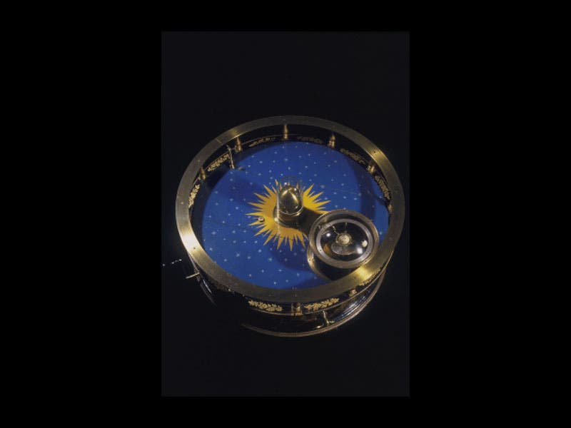 George Graham, an English clock- and instrument-maker, was born July 7, 1673. The 18th century saw the transformation of the instrument-maker from a lower-class, ill-respected artisan to an honorable gentleman-craftsman, worthy of membership in genteel society. George Graham was mostly responsible for this metamorphosis. He made telescopes and clocks for patrons who were so pleased with Graham’s meticulous handiwork that they saw to it that Graham got a share of the limelight. When Pierre Maupertuis visited London prior to making his trip to Lapland in 1736 to determine the shape of the earth, he was so impressed by Graham that he outfitted his expedition almost exclusively with Graham sextants, theodolites, and telescopes, and he gave Graham credit in his narrative. James Bradley used a Graham zenith telescope to discover the aberration of light in 1729 (third image), the first evidence that the earth moved around the sun, and he too credited Graham for his success. The fourth image above shows a side view of a Graham watch of about 1735.