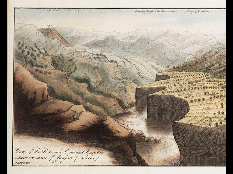 Scrope came to conclude that the Auvergne, Velay, and Vivarais regions had formed from volcanic processes over a very long period of time, and his ideas on the immensity of geological time were taken up by Charles Lyell, when he put forward his principle of uniformitarianism in 1830. We displayed Scrope's book in our 2004 exhibition, Vulcan's Forge and Fingal's Cave.
