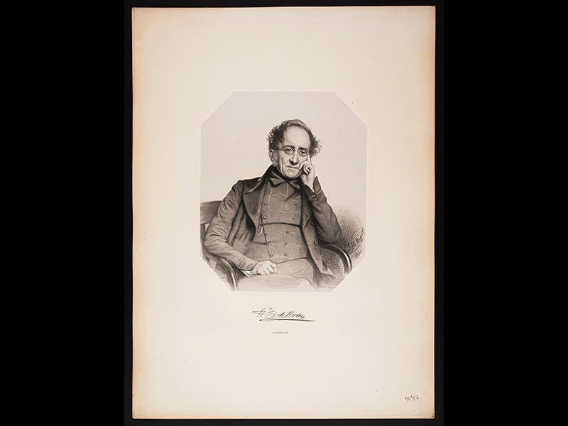 The portrait of De la Beche above is also a lithograph, but it was done in 1851 by Thomas Maguire, who did a whole series of portraits of scientists around this time. Maguire’s portrait of De la Beche is the only one the Library owns—we acquired it because we thought it would be nice to have a lithograph of a lithographer.