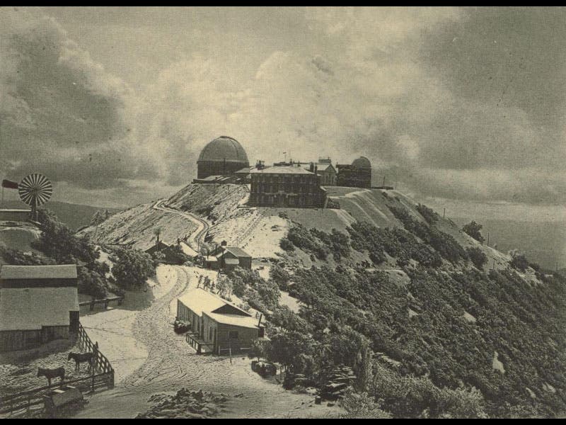 The images above show the completed mountain-top observatory, from a period photo; the Lick refractor, from a period wood engraving, a portrait of Lick, and a photograph of the moon, made with the Lick refractor in 1897. We featured the album that contained the Lick lunar photographs in our exhibition, The Face of the Moon.