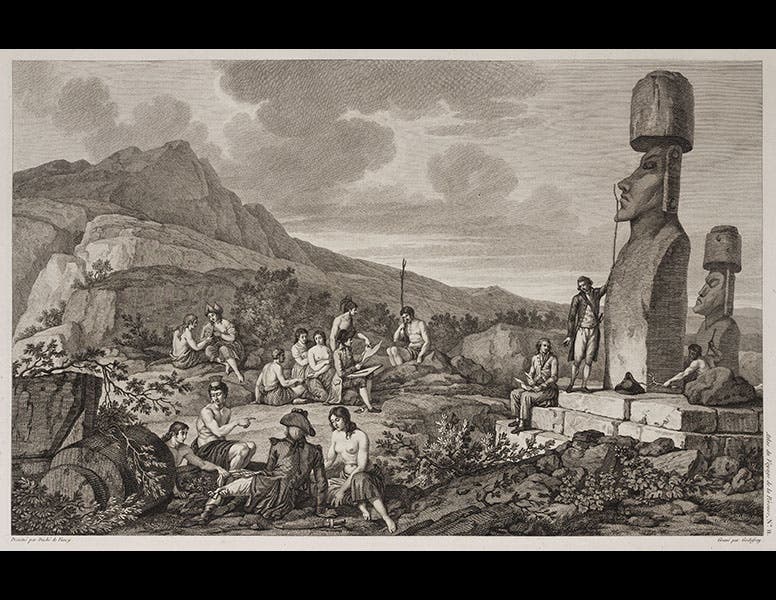 Lapérouse and his crew and ships cross-crossed the Pacific for almost 3 years.  They stopped in at Easter Island (first image), then Maui in the Sandwich Islands for a day, then north to Alaska.  In southeastern Alaska, they entered a bay that Lapérouse named Port des Français, now known as Latuya Bay, where they made camp (second image).  It turns out this inlet has a very intense tidal flow, and two boats with 21 crew capsized, with the loss of all men (third image).