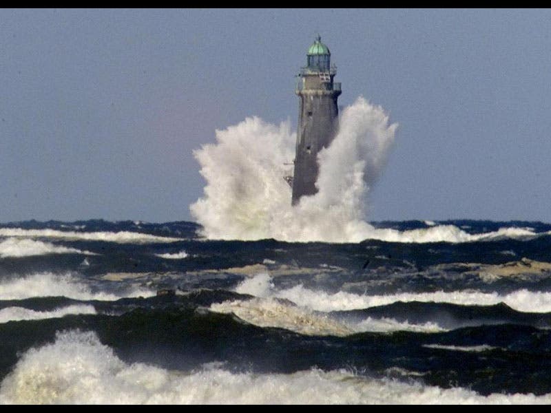 The task of executing Totten’s design fell to Barton Stone Alexander (yet another soul whose career seems to have been determined by his middle name), and over the course of 5 years, from 1855-60, 40 layers of good Quincy granite were laid and interlocked, and the lighthouse gradually rose from the sea. The completed structure is 114 feet tall, and the bottom 40 feet are solid stone, which means that to enter the lighthouse, you have to climb up an exterior 40-foot iron ladder just to get to the door. The lamp was first lighted on Nov. 15, 1860, and the lighthouse has remained firmly in place since its completion. It was originally equipped with a second-order Fresnel lens, which was replaced by a third-order lens in 1947.