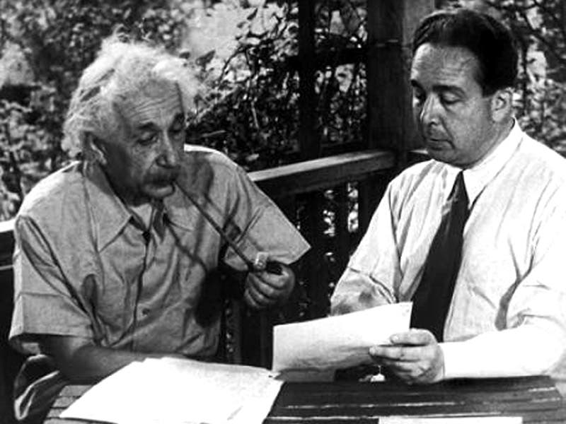Some time later, in August of 1939, Szilard came to Princeton to talk to Albert Einstein, and Szilard convinced Einstein to send a letter to President Roosevelt (which Szilard had already drafted), stressing the importance of initiating work on an atomic bomb. As a result, the Manhattan Project was launched. There is a famous Life magazine photograph that captures this momentous meeting between Einstein and Szilard, even if it was a re-enactment (first image). The beginning of the letter is shown in the second image.