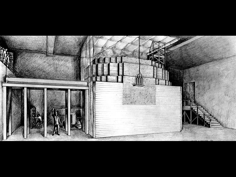 Szilard went on to become chief physicist at Met Lab, the code name for the project directed by Enrico Fermi to construct a self-sustaining reactor at the University of Chicago. Chicago Pile-1 (third image) was a success, and a re-union photograph of the chief participants (fourth image) includes Fermi at front left, and Szilard as third from the right, in the white lab coat.