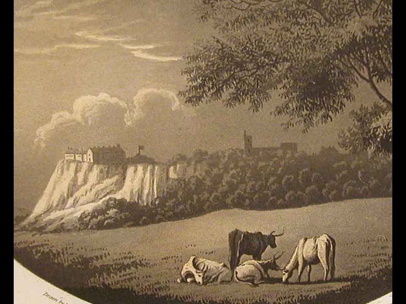 Another site he visited was Stirling Castle, north-west of Edinburgh. It sits on a dramatic whinstone sill and is one of the most perfectly situated fortresses you would ever want to see (fifth image, with detail following). Ten years earlier, James Hutton had gazed on a similar whinstone sill, the Salisbury Crags of Edinburgh, and had found evidence there that the Crags were once molten volcanic rock. Stirling Castle Rock, we now know, had a similar origin. We displayed Garnett’s book in 2004 in our exhibition, Vulcan’s Forge and Fingal’s Cave.