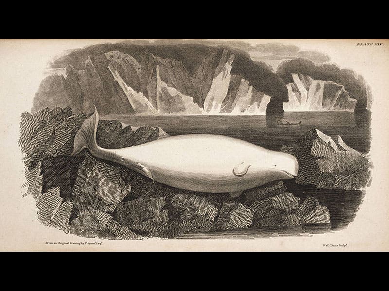 William Scoresby, Jr., a whaling captain, was born Oct. 5, 1789. There weren't many whalers who made their mark in scientific circles, but Scoresby was the exception. He made annual whaling trips into Arctic seas, always keeping an eye on his natural surroundings, and in addition to making notes on the polar bear and the beluga whale (first image), he noticed one year that the ice floes were thinning, and so he suggested to John Barrow of the Admiralty that now might be a good time to renew the search for a Northwest Passage. Barrow agreed, and in 1818 the first of many Royal Navy ships headed north, undergoing a series of adventures that we documented in our 2008 exhibition, Ice: A Victorian Romance.